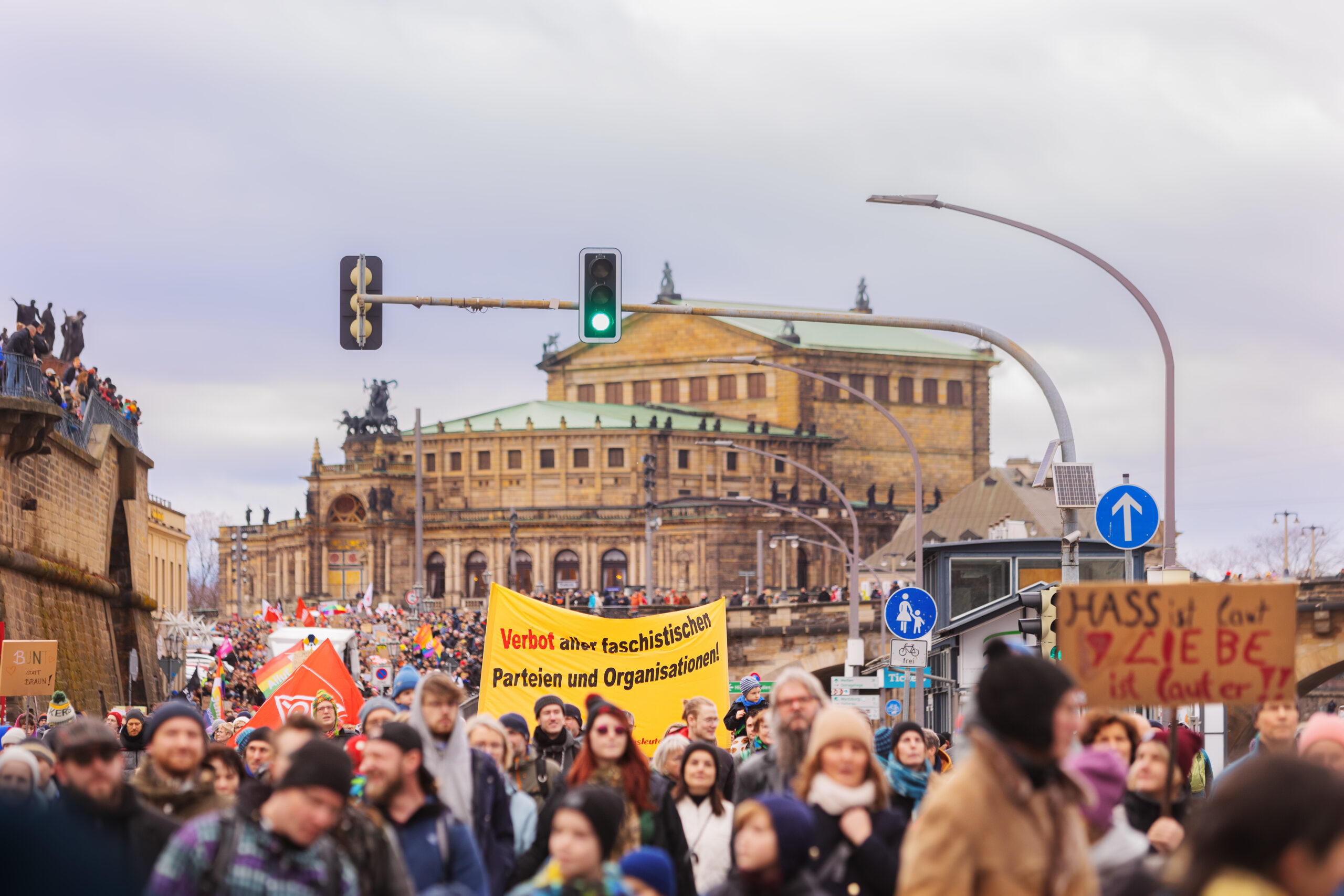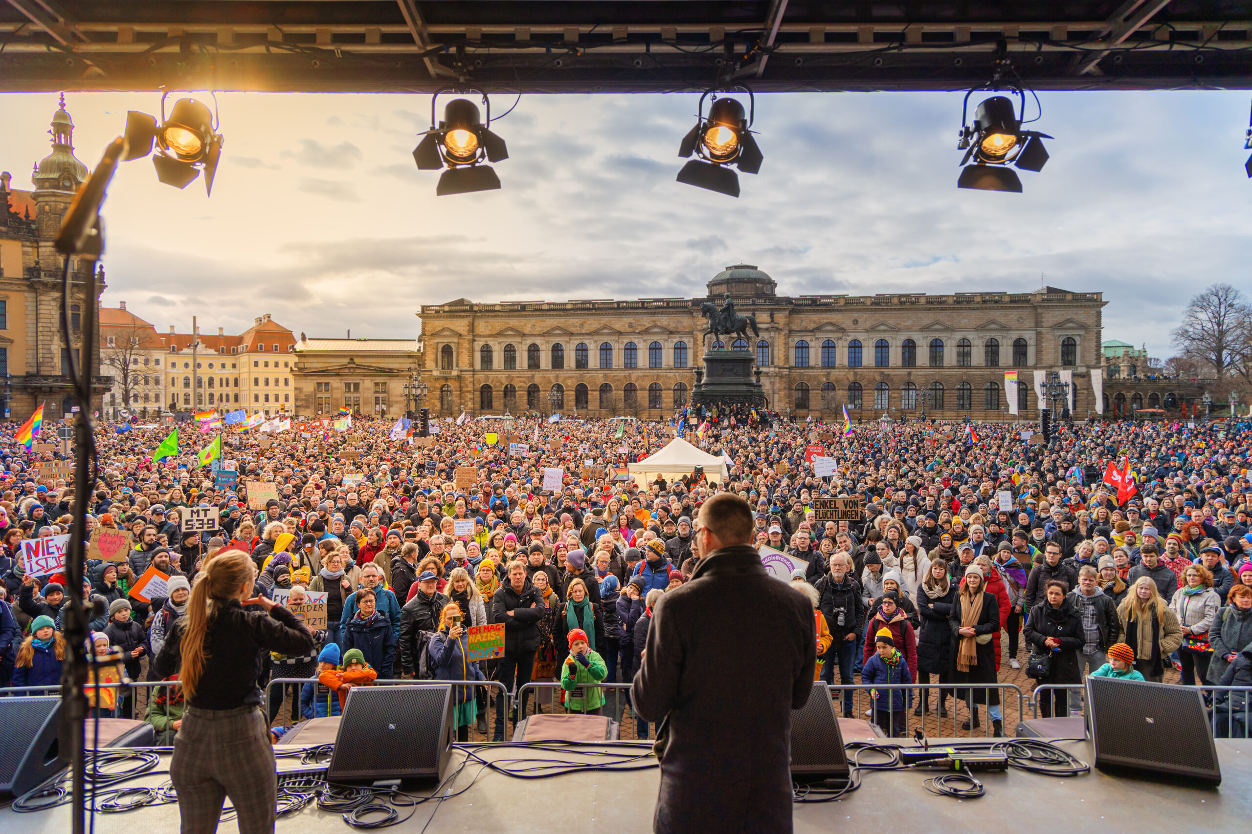 Was also bedeutet dies für die aktuelle Demowelle? Eben da rechtspopulistische Ideen längst im Mainstream angelangt sind, erscheint es dennoch wenig praktikabel und kaum zielführend, Parteien, Verbände und ihre Mitglieder vom Protest auszuladen: Die Massenidentifikation mit dem Protest wäre dahin, die Bewegung zerbröckelte. Fatal, wo es doch gerade das Einende der Kundgebungen ist, das solch ein starkes demokratisches Zeichen aussendet – noch dazu in einem Jahr, in dem die AfD-Verbände in Sachsen, Thüringen (beide laut Verfassungsschutz gesichert rechtsextremistisch) und Brandenburg Landtagswahlen zu gewinnen drohen.